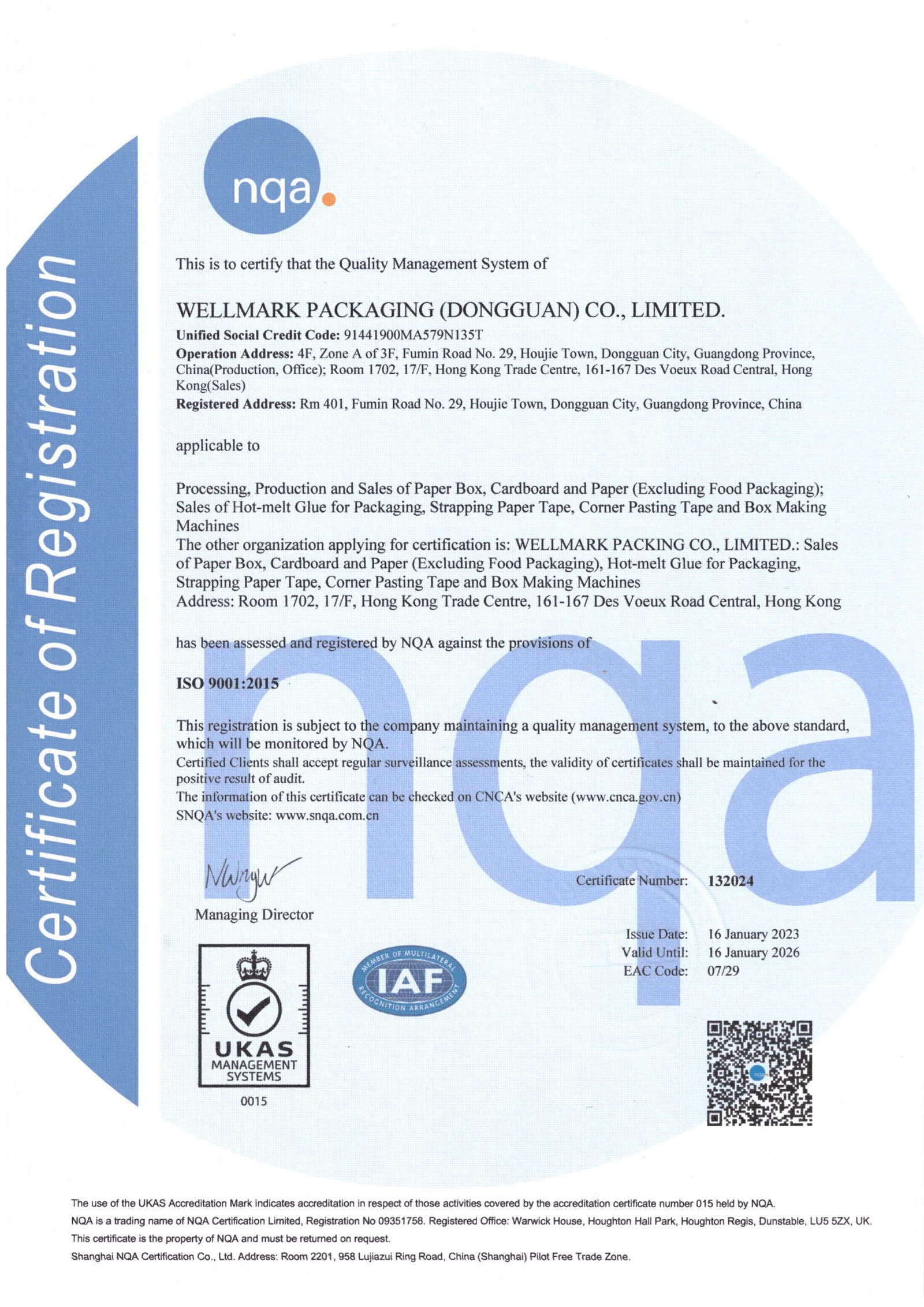 Wellmark Packaging Co., Ltd. was established in 2007 and is headquartered in Dongguan City, Guangdong Province, China. We are a professional manufacturer specializing in industrial adhesives, including hot melt glues, pressure-sensitive adhesives (PSA), EVA glues, jelly glues, bone glues, glue sticks, and hot melt tapes.